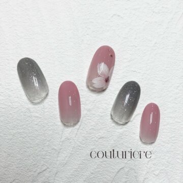 銀座ネイルサロンでも人気の、上品な桜ネイル×グレージュネイル。