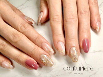 銀座ネイルサロンクチュリエールでも、ピンクの桜ネイルとミラーネイルの組み合わせは春の人気デザイン。