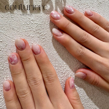 春ネイルでは、やわらかなピンクやベージュ、淡いカラーをベースにすることで、