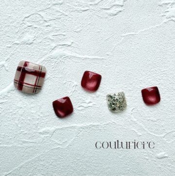 マグネットネイルにチェックデザインを合わせたキレイ系フットネイルです😊