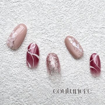 マグネットネイルとハートホロにピンクを重ねたデザインです♡新色ピンクラメと合わせたラインネイルです💕