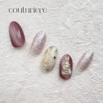 新作クリスマスネイル🎄です。マグネットとツリー、雪の結晶を使った大人っぽく仕上がっています❄️