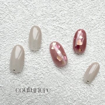 ハートのホログラムをマグネットで挟んだ、奥行きのあるハートデザインになっています😊大人のバレンタインネイルです🍫